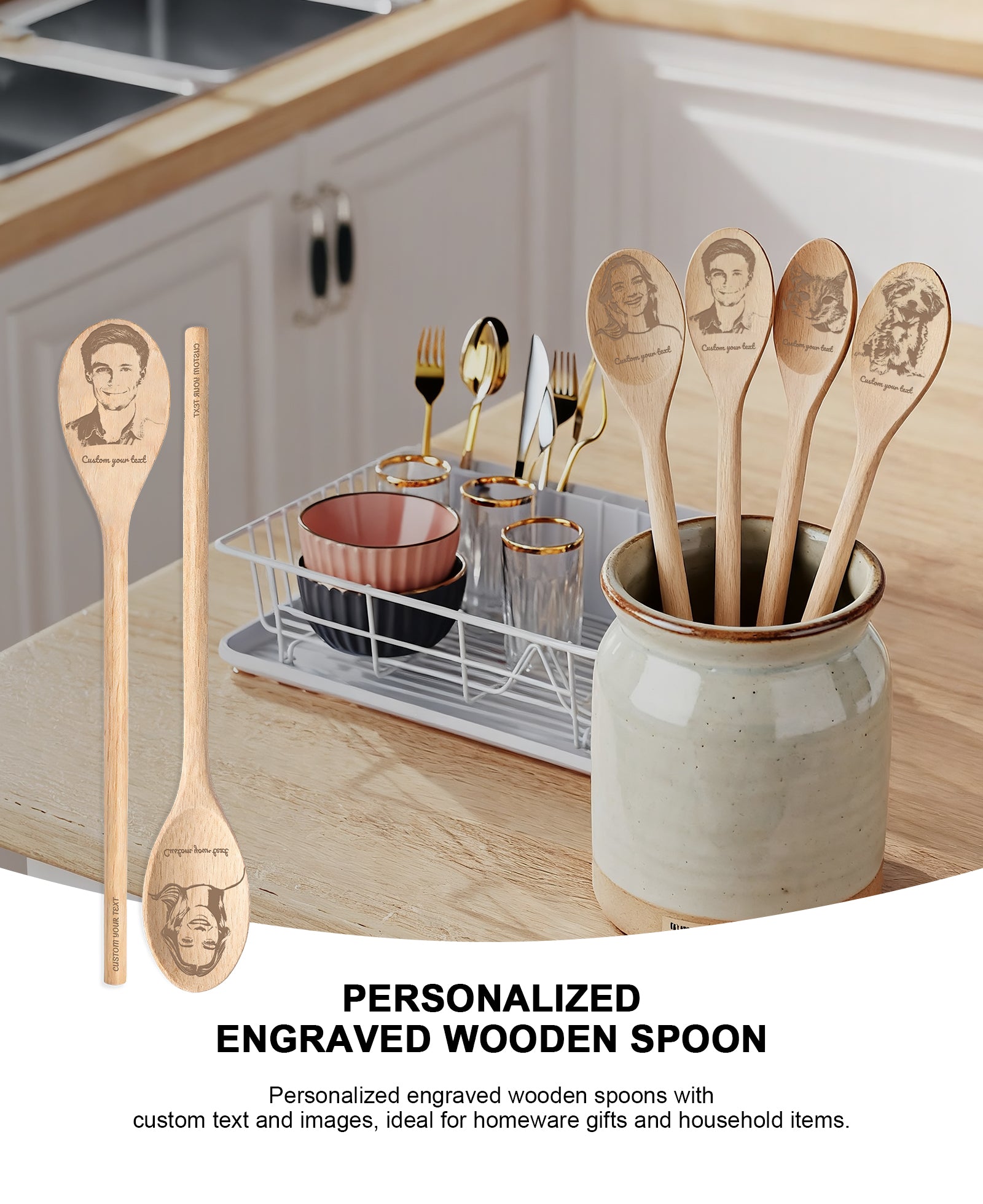 Custom Wooden Spoon - Personalized Engraved with Photo & Name | Unique Kitchen Gift for Mom, Wife, Grandmother | Cooking, Wedding, Anniversary Keepsake